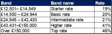 Scotland has devolved powers to set its own rates and bands of income tax and these have now been agreed as follows for 2019/20: